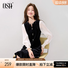 OSA欧莎赫本风假两件连衣裙女2025年秋季新款气质优雅约会鱼尾裙
