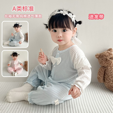 宝宝衣服婴儿连体衣夏季薄款新生儿长袖空调服纯棉睡衣夏装家居服