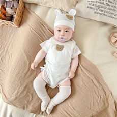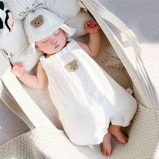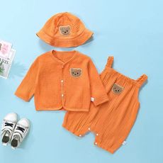 新生儿夏装婴儿纯棉纱布防晒外套宝宝夏季薄款吊带连体衣三件套