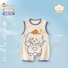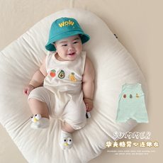 婴儿衣服夏季薄款宝宝连体衣夏天无袖背心新生儿可爱超萌哈衣夏装
