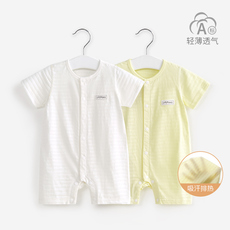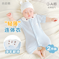 婴儿连体衣夏季薄款新生婴儿空调服外出短袖夏装宝宝夏天哈衣爬服