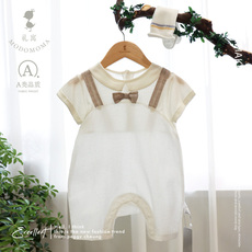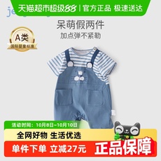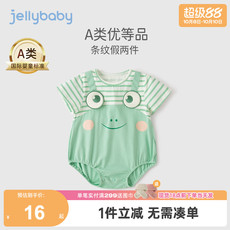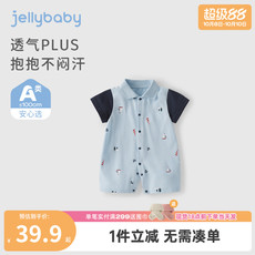 jellybaby6个月新生儿哈衣夏装男宝宝帅气假两件衣服夏婴儿连体衣