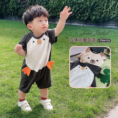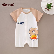 婴儿衣服卡通夏装连体衣短袖宝宝哈衣爬服可爱夏薄款新生儿外出服
