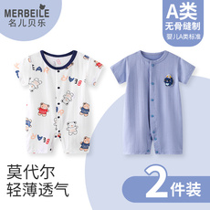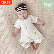 莫代尔空调新生婴儿短袖连体衣服女宝宝男夏季睡衣轻薄款哈衣夏装