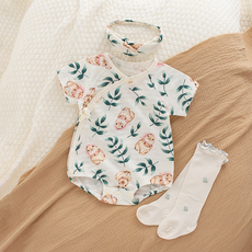 婴儿夏季衣服纯棉新生儿哈衣夏装薄款睡衣套装满月宝宝连体衣短袖