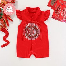 婴儿夏装衣服男宝宝纯棉连体衣满月国风汉服哈衣短袖复古新生唐装