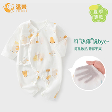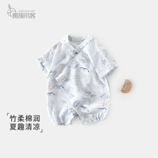 日本新生婴儿夏季连体哈衣薄款空调夏装满月蝴蝶衣初生宝宝和尚服