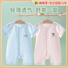 纯棉纱布新生婴儿短袖连体衣服夏季薄款宝宝睡衣夏装1岁2夏天哈衣