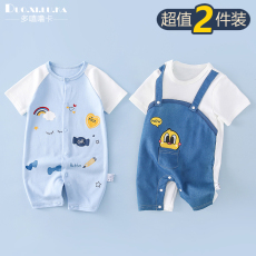 夏季新生婴儿连体衣纯棉薄款透气爬服短袖夏装男女宝宝衣服0-2岁1