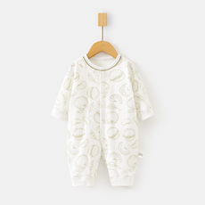 婴儿连体衣春夏季提花对开男女宝宝长袖哈衣家居服睡衣新生儿爬服