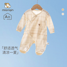 娃丽比春夏薄款新生婴儿长袖绑带连体衣棉纱布透气柔软居家空调房