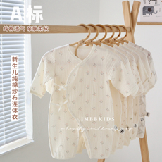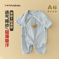 嫚熙宝宝衣服春夏季纱布款短袖和尚服新生婴儿连体衣0-9月哈衣