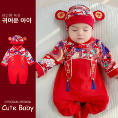 春夏连体衣蛇年新生儿满月男宝爬服男孩百日D1016百天衣服宴婴儿