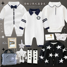 新生儿用品婴儿礼盒男宝宝春夏纯棉休闲绅士连体衣爬服套装满月礼