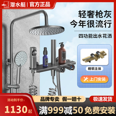 潜水艇淋浴花洒套装大置物台增压喷枪浴室家用升降圆形方形顶喷头