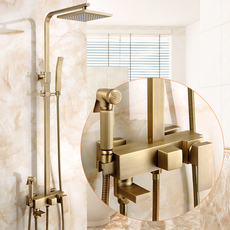 仿古浴室沐浴壁挂式方形淋浴器淋雨花洒增压喷头全铜拉丝花洒套装