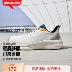 安踏男鞋运动鞋秋季新款男士休闲鞋旅游鞋白色网面透气轻便跑步鞋