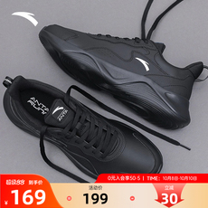 安踏男鞋跑步鞋2025秋季新款皮面防水旅游鞋男士轻质黑色运动鞋