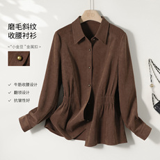YBAI/亦白 2025秋季新款磨毛肌理简约百搭上衣显瘦翻领收腰衬衫女