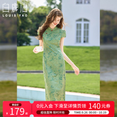 雅乔【国色翠浓】夏季修身翡翠绿连衣裙蝴蝶牡丹花新中式旗袍中裙