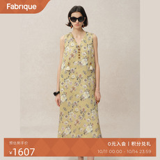 Fabrique巴洛克玫瑰亚麻混纺V领无袖连衣裙2025夏季新品度假长裙
