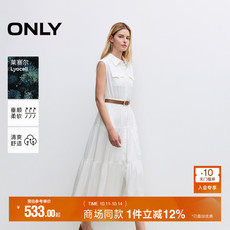 ONLY2025夏季新款莱赛尔收腰无袖翻领修身蛋糕长裙黑白色连衣裙女