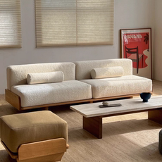 奶油风客厅现代极简小户型法式复古别墅原木日式休闲布艺直排沙发
