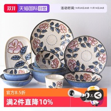 美浓烧日本进口餐具冲绳玫瑰花陶瓷碗盘碟家用组合套装米饭碗乔迁