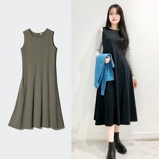 日潮跑腿UNIQLO优衣库25女装高弹力无袖纯色连衣裙内搭裙子477305
