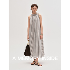 A Memory Inside日本进口亚麻 手工串珠 条纹a字无袖连衣裙女夏