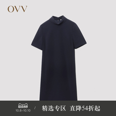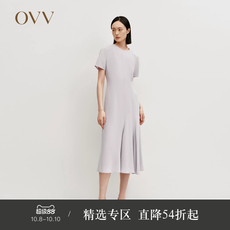 【日本进口三醋酸】OVVOutlet2024秋冬新款女装短袖圆领A字连衣裙