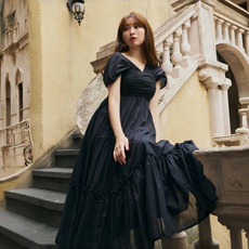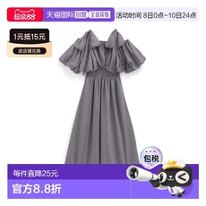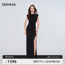 ERINRAE【代斯同款】新款日本进口三醋酸垫肩收腰长款礼服连衣裙