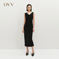 【极夜丝绒】OVV秋冬热卖女装日本进口面料荡领无袖连衣裙
