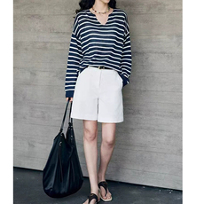 日本进口和纸纱针织衫 慵懒松弛感条纹长袖防晒针织薄款上衣罩衫