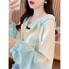 日本小众外套女秋冬季宽松大码开衫小个子连帽撞色棒球服卫衣潮