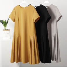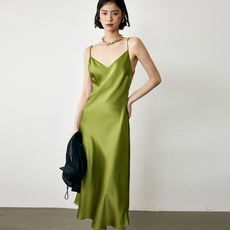 Carolingian高雅气质!法式JI简日本进口醋酸连衣裙女 经典中长裙