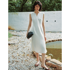 【极夜丝绒】OVVOutlet2024秋冬女装日本进口面料荡领无袖连衣裙