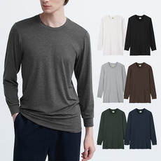 出口日本外贸春秋款男吸湿发热抗菌除臭轻薄九分袖圆领V领打底T恤
