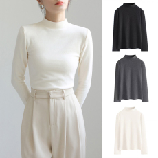 日本贵牌2025秋女式简约纯色打底衫毛衣外贸原百搭优雅针织衫线衣