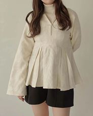 日系文艺风高品质重工百折小灯笼袖宽松减龄遮肉亚麻长袖衬衫上衣