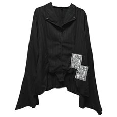Miub日系亚文化衬衫女春夏不规则长袖衬衣暗黑设计感山本贴布上衣