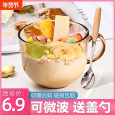 燕麦片早餐水杯子带盖勺透明微波牛奶马克日式家用大容量玻璃碗女