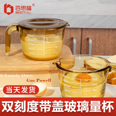 玻璃刻度牛奶杯家用耐高温带盖水杯可微波学生咖啡豆浆杯早餐杯子