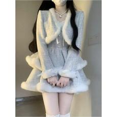 冬季名媛风雪尼尔套装裙2025女装新款时尚外套荷叶边长裙两件套