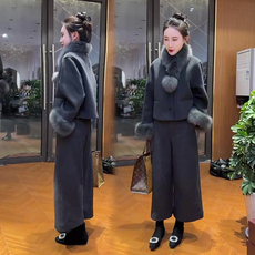 轻奢小香风两件套2025秋冬名媛风气质时尚洋气阔腿裤上衣女士套装