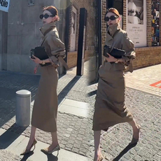 2025年秋季新款时尚长袖连体裤套装女气质名媛收腰显瘦连衣阔腿裤
