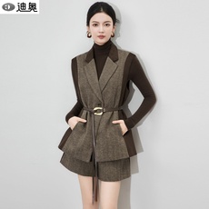 2025马甲套装裙女红色秋冬毛呢修身名媛风时尚显瘦半身裙两件套