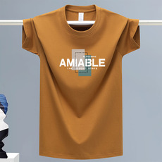 夏季新款男士短袖潮流T恤百搭青少年印花修身帅气圆领时尚打底衫