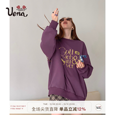 【多肉葡萄】Uena明星同款撞色字母刺绣落肩长袖抓绒圆领卫衣女