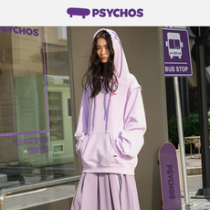 明星同款PSYCHOS莎可斯鞋带套头连帽紫色卫衣男女同款PA3UBMM098